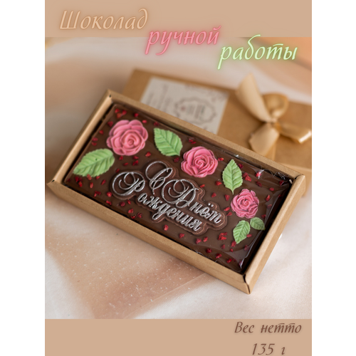 Шоколад Sweet_LD молочный ручной работы С днем рождения шоколадная открытка, 135 г