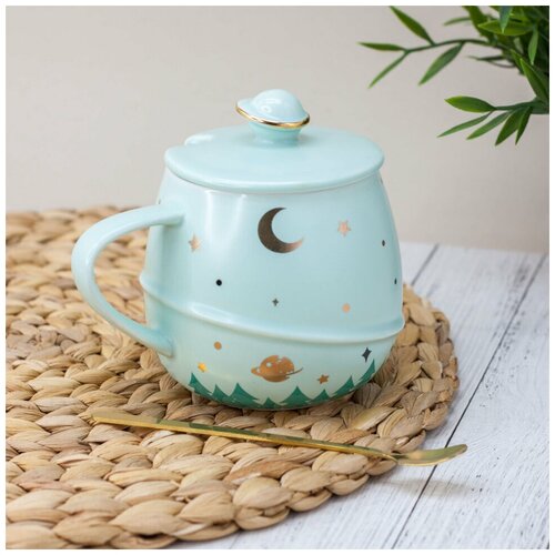 Кружка с крышкой и ложкой ILikeGift Planet and stars 440 мл, зеленая