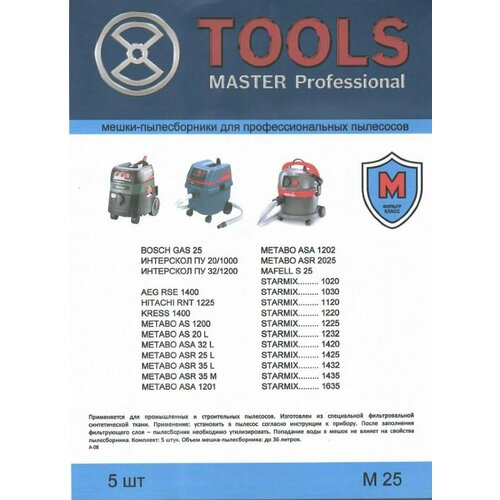 Мешки для пылесосов до 36 литров 5 шт. M 25 TOOLS
