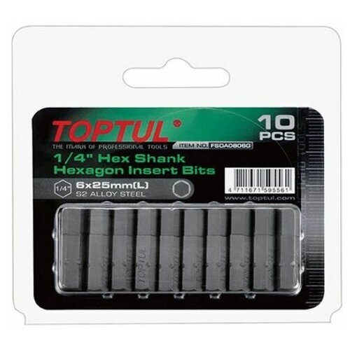 Насадка шестигранник 2,5мм 1/4" 10шт блистер TOPTUL (FSDA082EG)