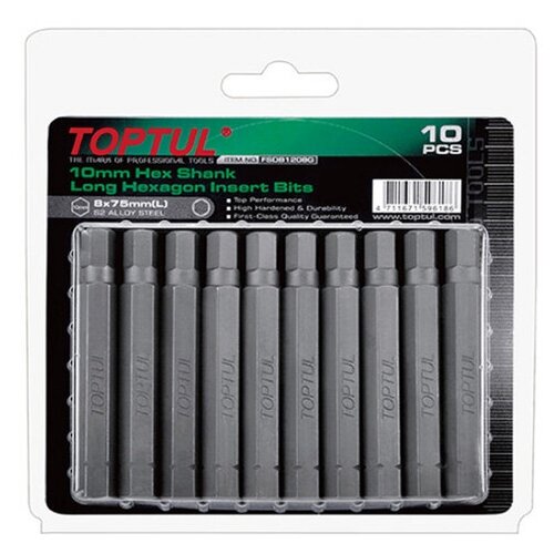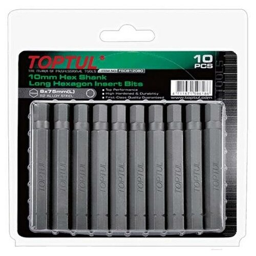 Насадка шестигранник 8мм удлиненн. 75mm 10шт блистер TOPTUL (FSDB1208G)