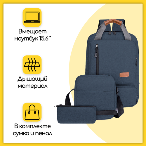 Рюкзак городской влагонепроницаемый 3 в 1, с сумкой и пеналом, для ноутбука 15.6", 42x30x13 см