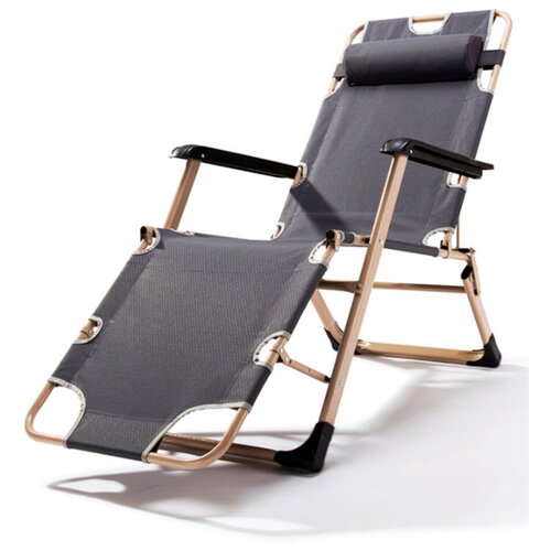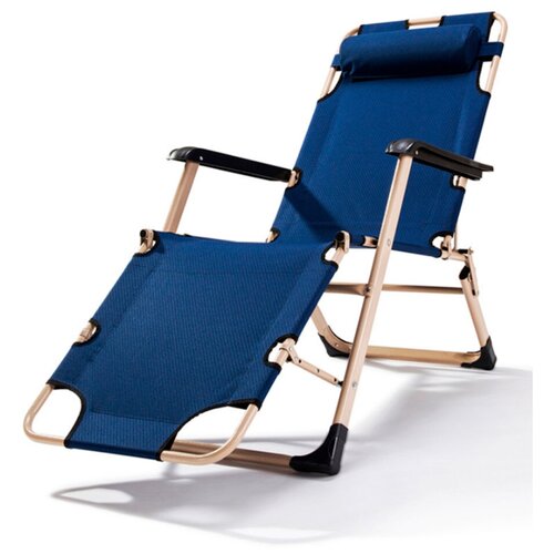 Раскладушка кресло-кровать с подушкой, 178х52х38 см, синяя