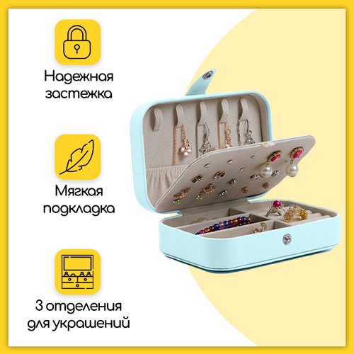 Шкатулка-органайзер для хранения украшений, драгоценностей, бижутерии, 165х115х55 мм, голубая