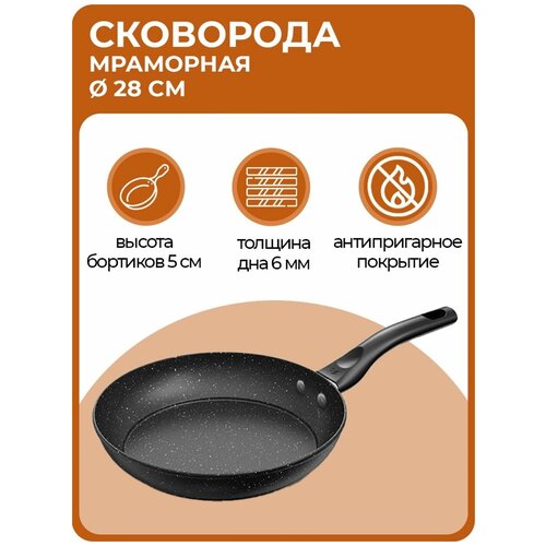 Сковорода, диаметр 28 см, несъемная ручка, мраморная