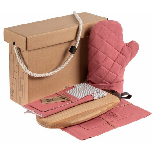 Набор Feast Mist, розовый, 37,5х13,6х27,5 см, хлопок; лен; ценные породы дерева; натуральная кожа; микрогофрокартон