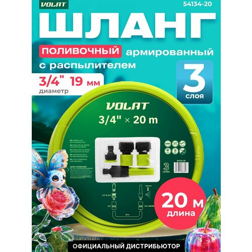 Шланг поливочный с комплектом для орошения волат 3/4" 20 м (54134-20)