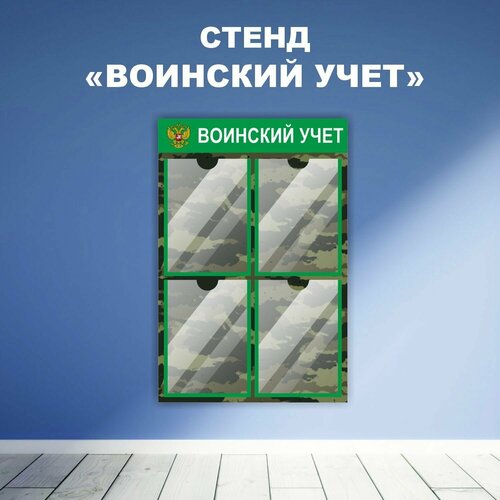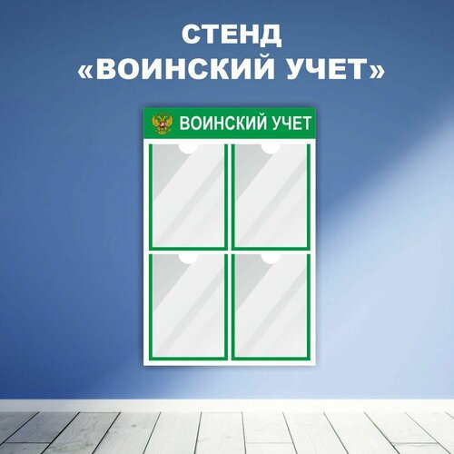 Стенд информационный "Воинский учет", 4 плоских кармана А4, 500х750 мм, VoloMar