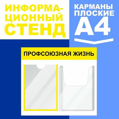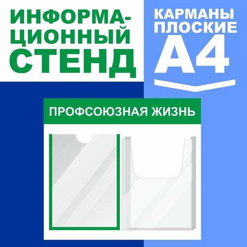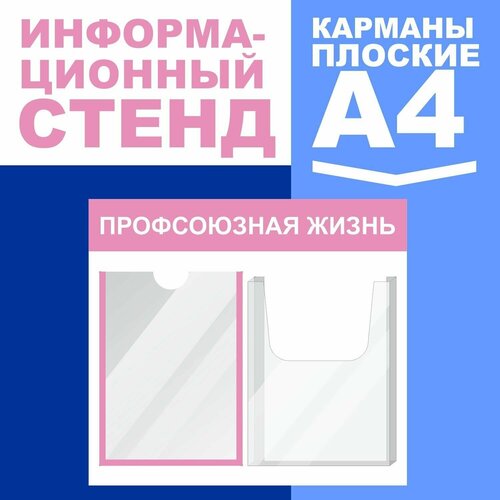 Стенд информационный "Профсоюзная жизнь", 1 плоский карман А4, 1 объемный карман А4, 450х500 мм, VoloMar