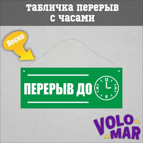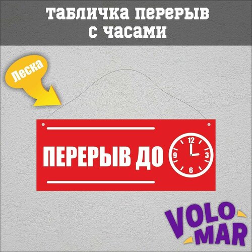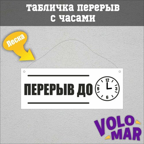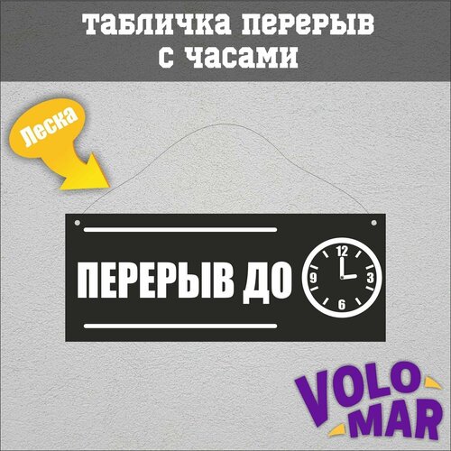 Табличка "Перерыв до" с часами, 300х120 мм, ПВХ 3 мм, VoloMar
