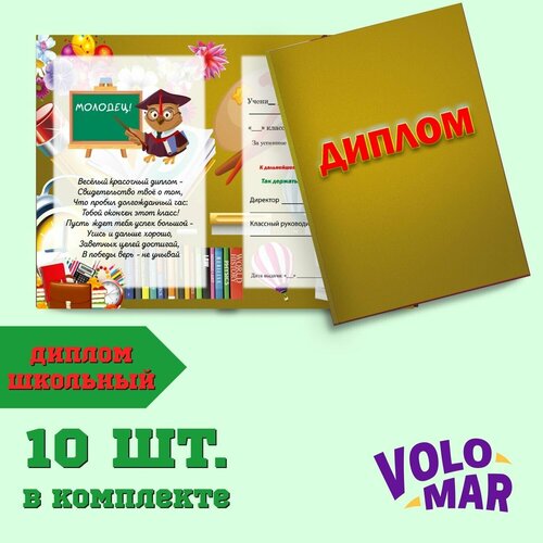 Диплом подарочный "Об окончании учебного года", формат А4, золотой, комплект 10 шт, VoloMar