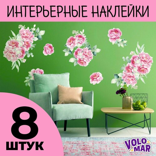 Наклейки интерьерные "Пионы", комплект 12 шт, VoloMar