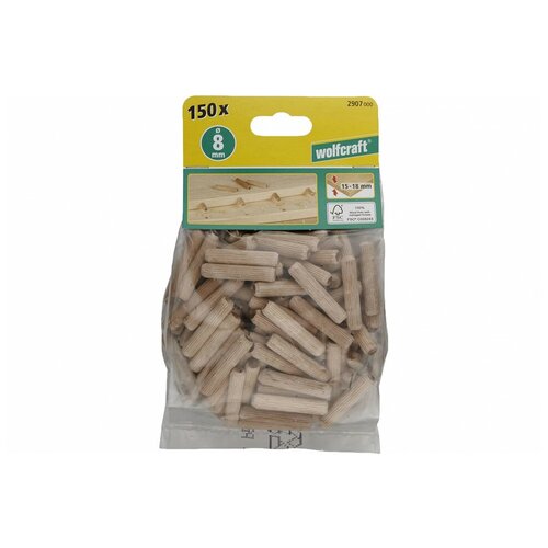 Шканты деревянные WOLFCRAFT 2907000 (бук) 150шт, диам. 8х40мм