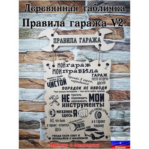 Табличка на стену "Правила гаража - мои правила Мой Гараж" версия 2 постер из дерева