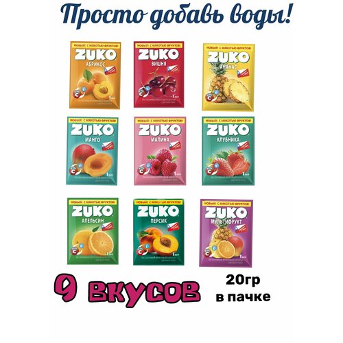 Набор растворимых напитков ZUKO (зуко), 9 вкусов по 20гр