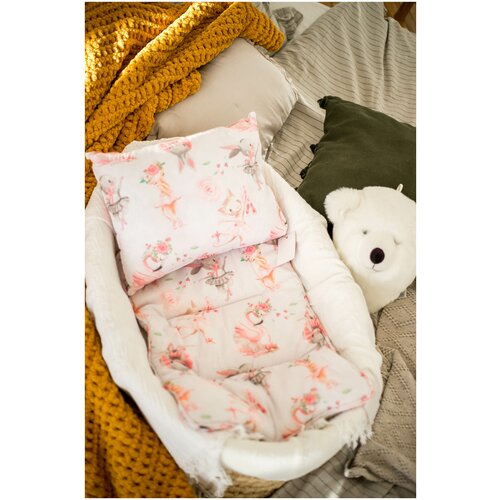 Матрас И подушка В коляску (розовый/кошечки-зайки)