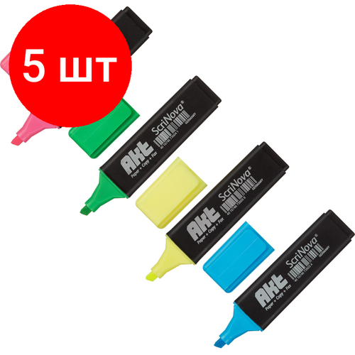 Комплект 5 наб, Набор текстовыделителей ScriNova Akt набор 4 цв. 1-5 мм