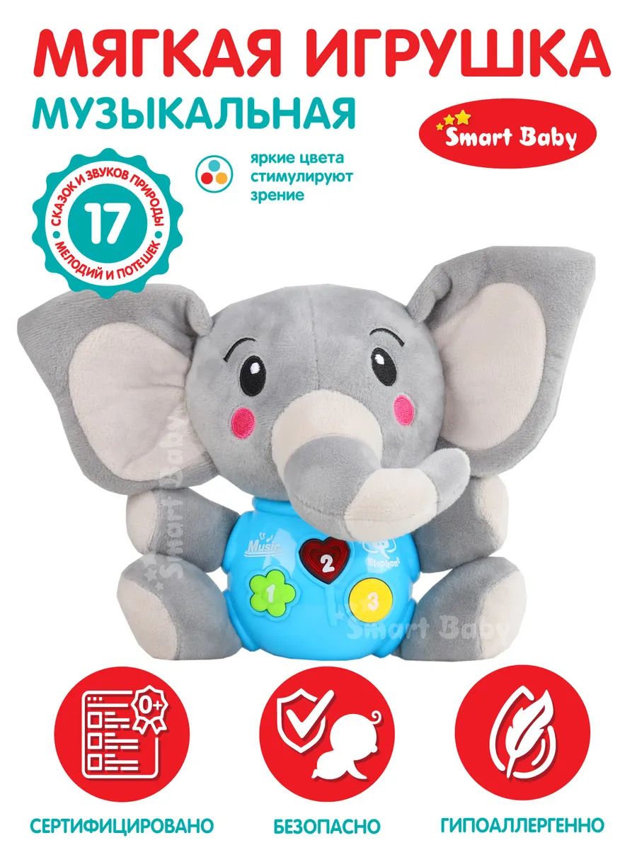 Развивающая мягкая игрушка Smart Baby Слон ТМ Smart Baby, свет, звук, JB0334071