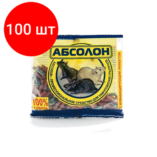 Комплект 100 штук, Средство от грызунов Абсолон гранулы 100г пакет АЛГП100