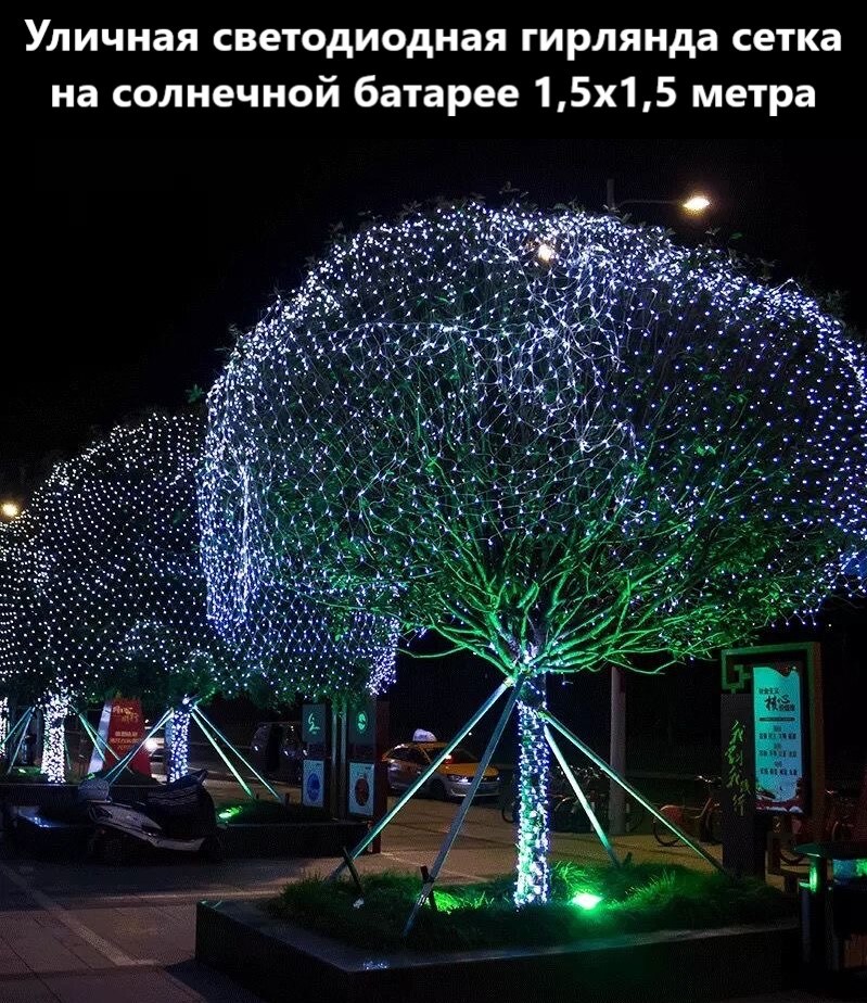 Садовая гирлянда BoomBoomShop сетка на солнечной батарее BB-00281 1,5х1,5 м. белая Светодиодная гирлянда
