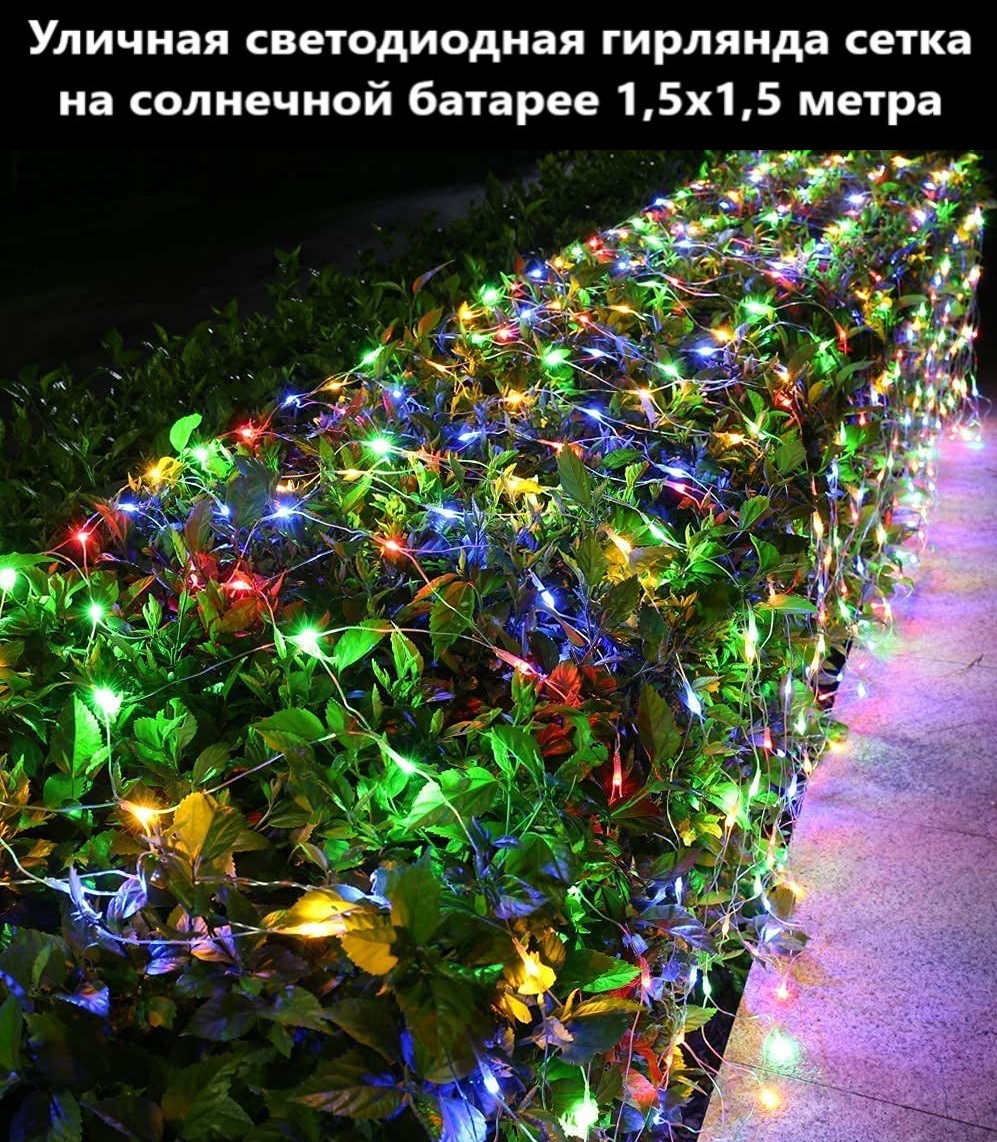 Садовая гирлянда сетка на солнечной батарее BoomBoomShop BB-00281 1,5х1,5 м. разноцветная Светодиодная гирлянда