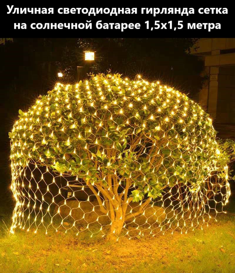 Садовая гирлянда BoomBoomShop сетка на солнечной батарее BB-00281 1,5х1,5 м. белый теплый Светодиодная гирлянда