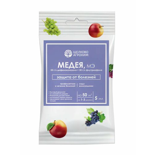 Фунгицид Щелково Агрохим "Медея", от болезней, для плодово- ягодных культур, 5 ампул по 5мл