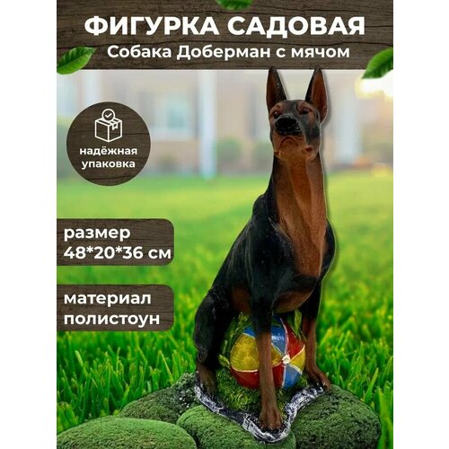 Большая садовая фигурка "Собака Доберман большой сидит" декор для дачи, сада и огорода