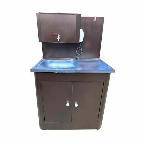 Умывальник дачный "Весна" с подогревом, тумба из ЛДСП, пластмассовый бак, нержавеющая мойка
