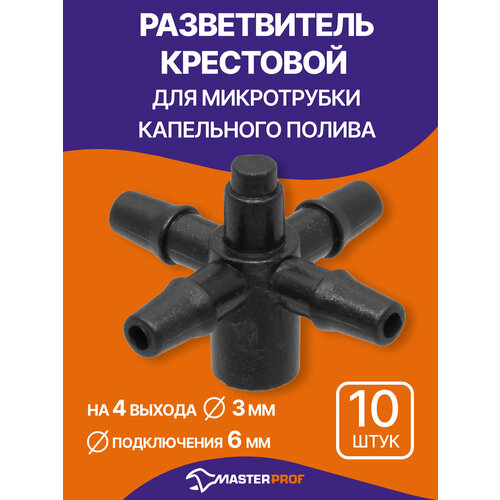 Разветвитель крестовой на 4 выхода 6 мм для микротрубки капельного полива 3 мм (10 шт.)