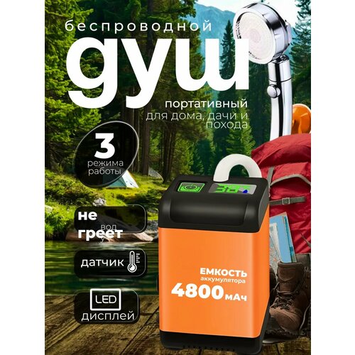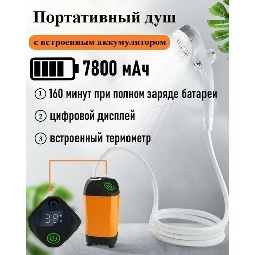 Душ походный с насосом, встроенным термометром, аккумулятором на 7800 мАч и цифровым дисплеем