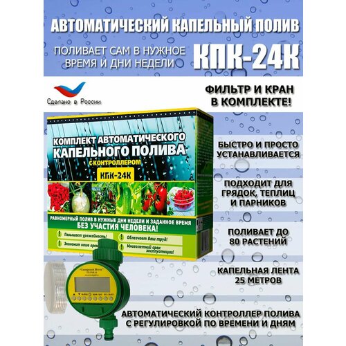 Капельный автоматический полив для овощей 79 растений КПК/24 К Исток контроллер самотёчный