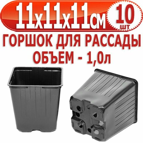 10 шт Горшок для рассады квадратный 11х11х11см, объем - 1,0л, формованный AMINA