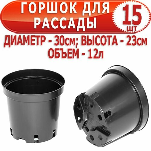 15 шт Горшок для рассады круглый диаметр 30см, высота 23см, объем - 12 л, литье AMINA