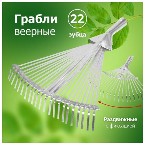 Грабли садовые веерные 22-зубые пластинчатые усиленные раздвижные цинковые "Урожайная сотка" без черенка