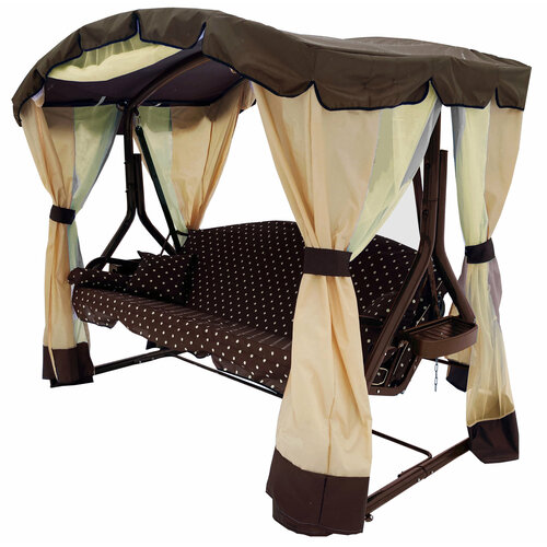 Садовые качели Патио, 3-х местные/ с москитной сеткой/ нагрузка 280 кг/ регулируемая спинка