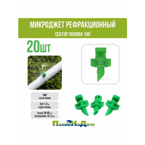 Микроджет рефракционный, сектор полива 180 градусов, радиус 0,9-1,3м, расход 30-55л/ч при давлении 1,5-3 bar (20 шт)