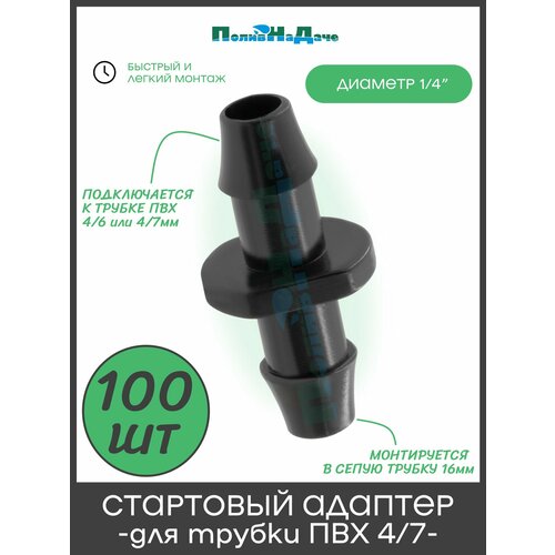 Стартовый резьбовой адаптер для трубки ПВХ 4/6мм и 4/7мм (1/4 дюйма) (100 шт)