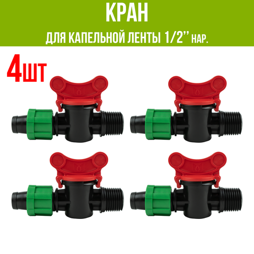 Кран 1/2" наружная резьба для капельной ленты (4 шт)