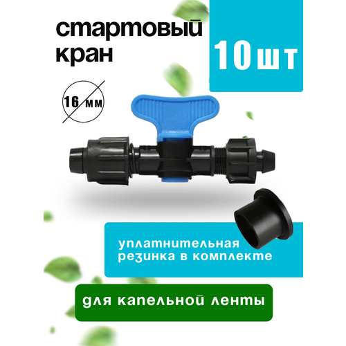 Кран стартовый для капельного полива, 16мм, с уплотнительными резинками, 10 штук в упаковке