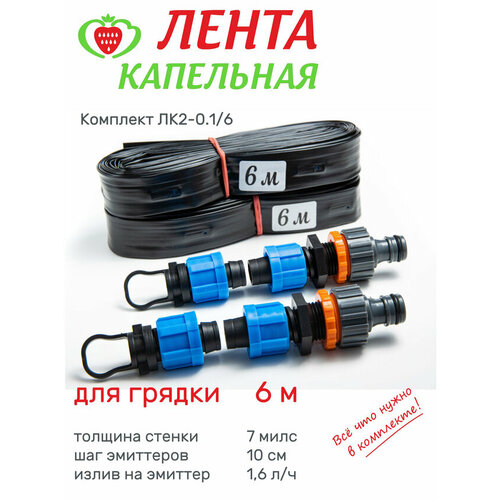 Лента капельная 2 шт, "Клубничная грядка", длина 6м, шаг 10 см, ЛК2-0.1/06, капельный полив, комплект