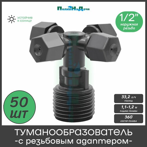 Туманообразователь чёрный, 2.0-4.0bar, радиус 1,1-1,2м, 33,2л/ч с резьбовым адаптером. Упаковка 50 шт