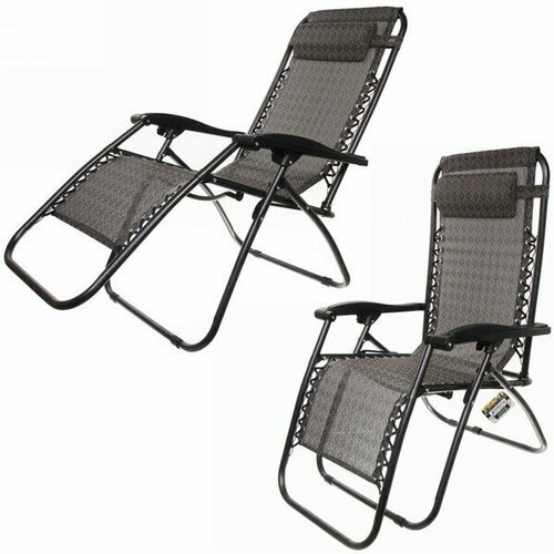 Кресло-шезлонг для дома, для дачи, на пляж и пикник складной с серой тканью без шлифовки комплект 2 шт