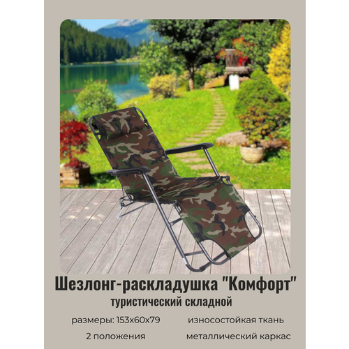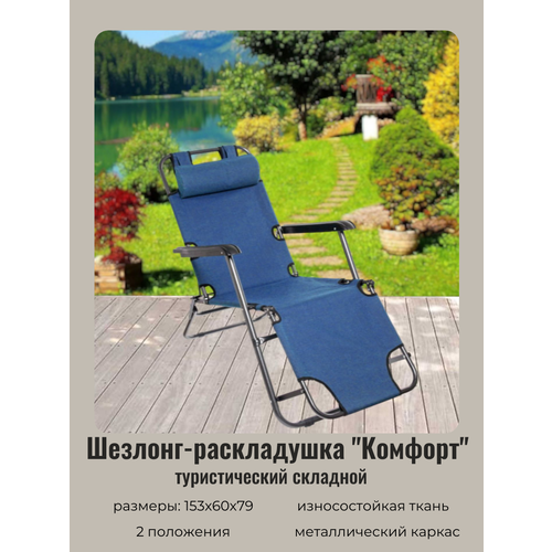 Кресло шезлонг туристическое складное 153*60*79см "Комфорт" с подголовником, 2 положения, ДоброСад