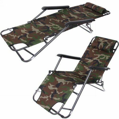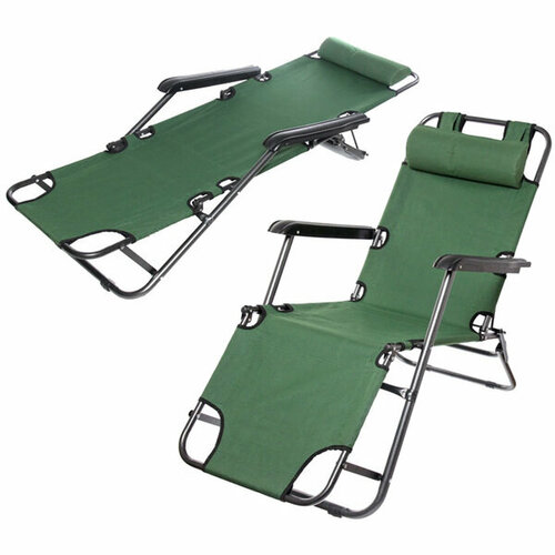 Кресло шезлонг туристическое складное 153*60*79см "Хаки" с подголовником, 2 положения ДоброСад