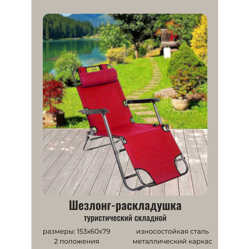 Шезлонг (раскладушка) 153*60*79см «Комфорт» с подголовником, 2 положения, красный ДоброСад