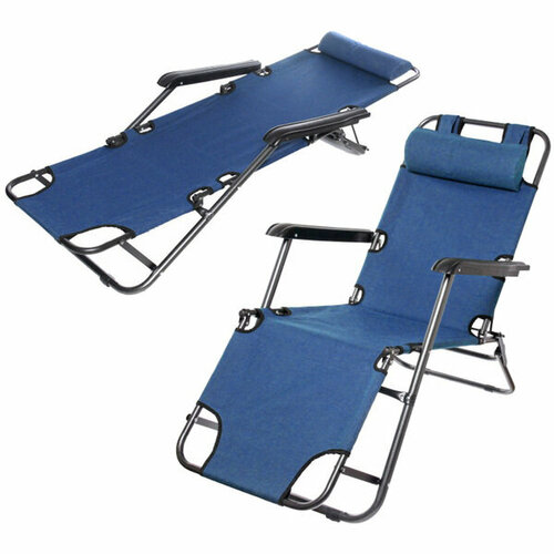 Кресло шезлонг складное для дачи и сада, складной шезлонг садовый, кресло туристическое синий