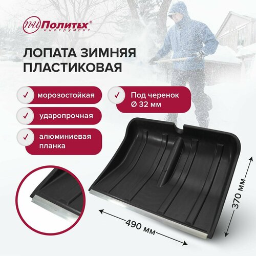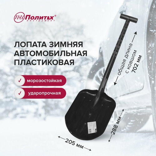 Лопата для уборки снега 20 х 28 х 70 см автомобильная алюминиевая с Т-образной ручкой, Политех Инструмент черный, серый, черный, серебристый