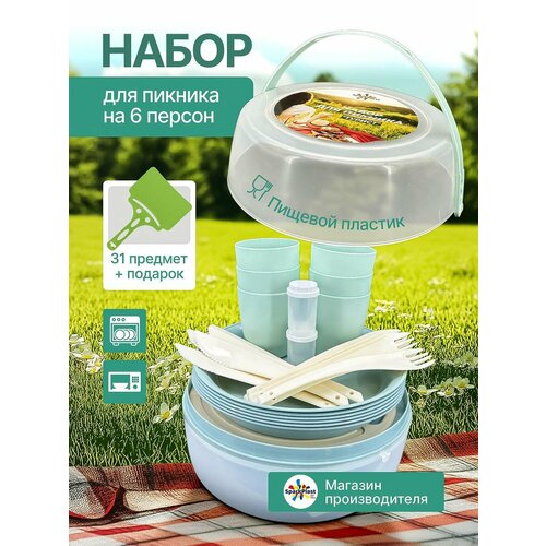 Набор посуды SparkPlast, для пикника, для 6 персон, 31 предметов, зеленый