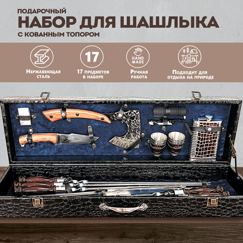 Шашлычный набор подарочный в кейсе позволяет легко транспортировать все содержимое в путешествие. Все принадлежности для барбекю хранятся в одном кейсе, что делает его незаменимым атрибутом на охоте, рыбалке или туристических поездках. Просто сокровище как для туриста, так и для опытного шашлычника.